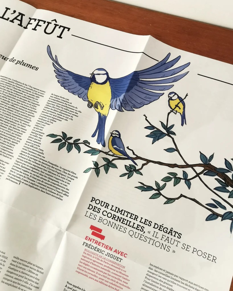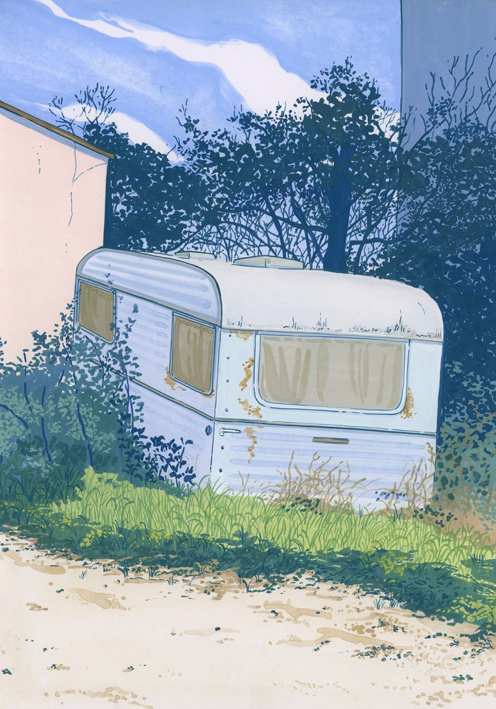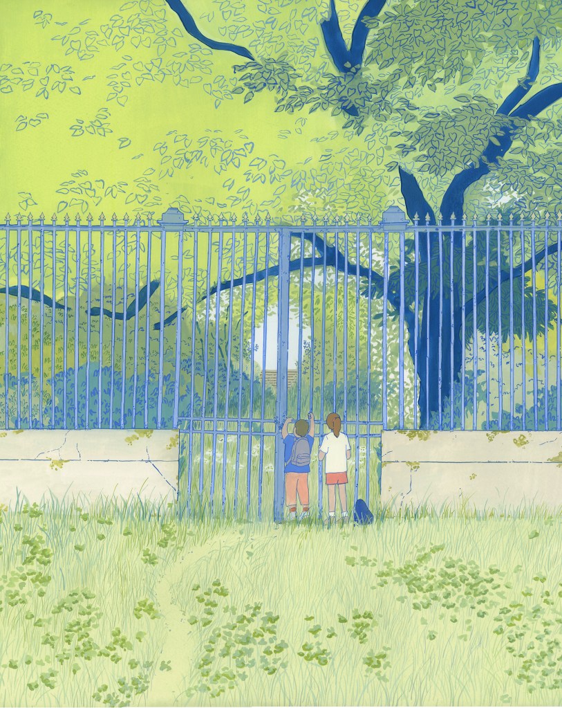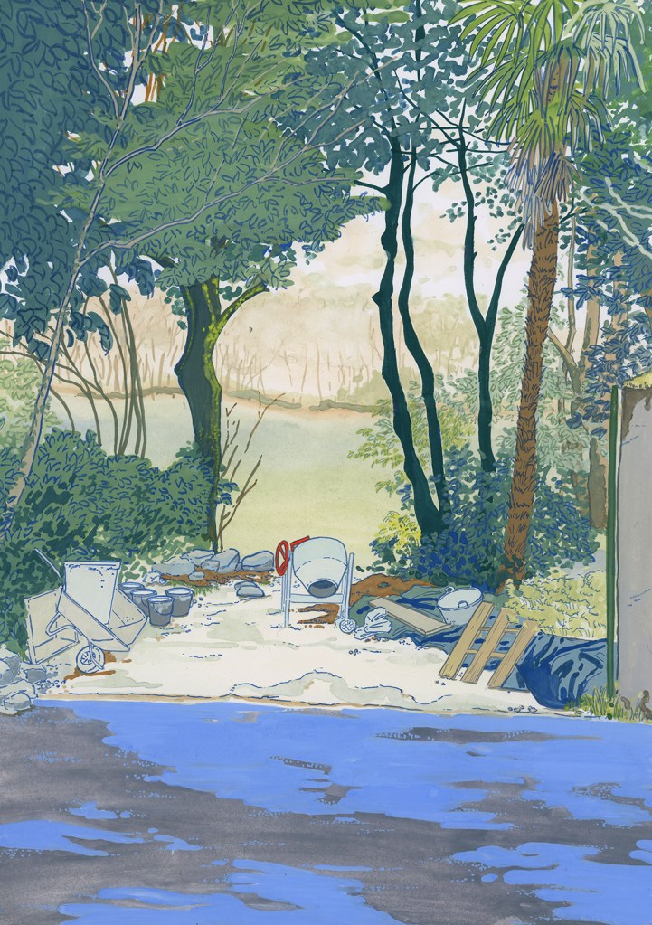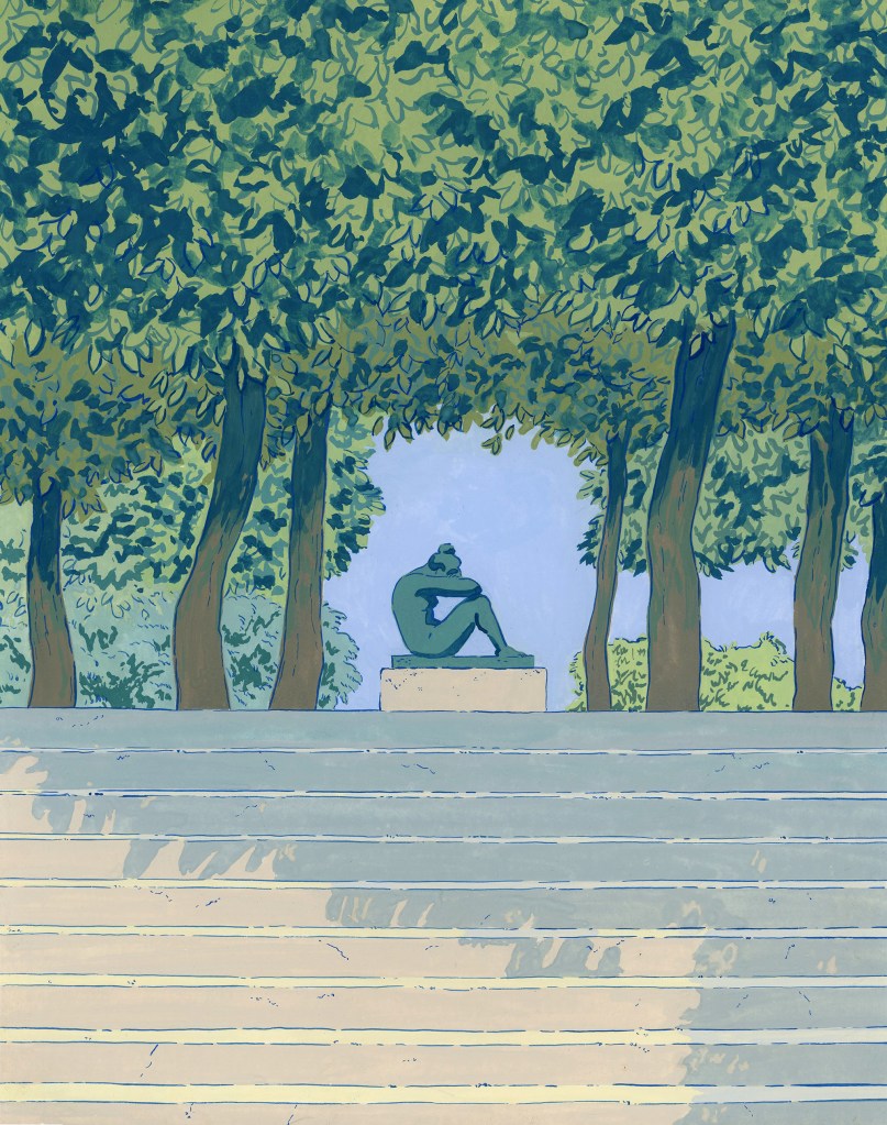 After studying archaeology and art history at the Ecole du Louvre, she turned to illustration. She likes to paint with gouache the memories of her walks, the shady areas near rivers and the weeds that resist in cities.