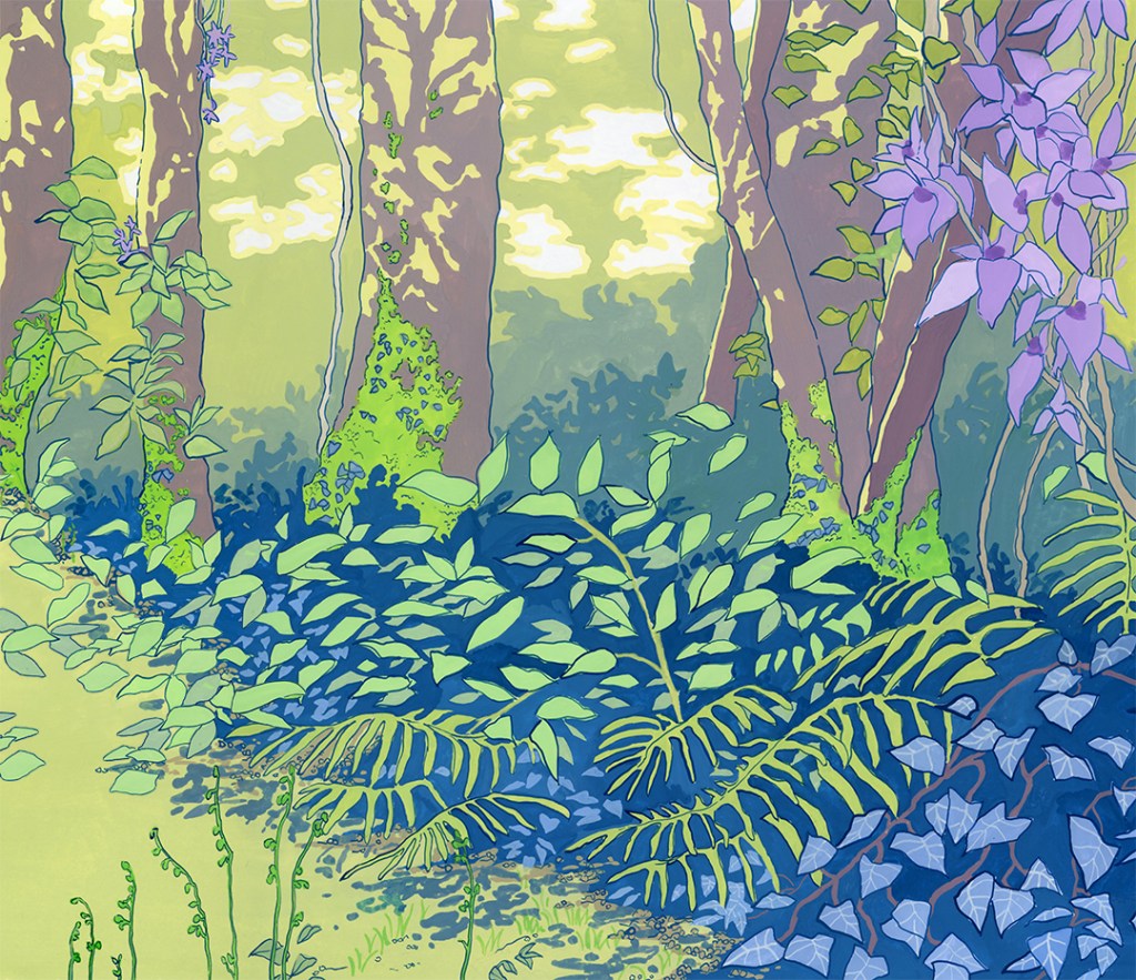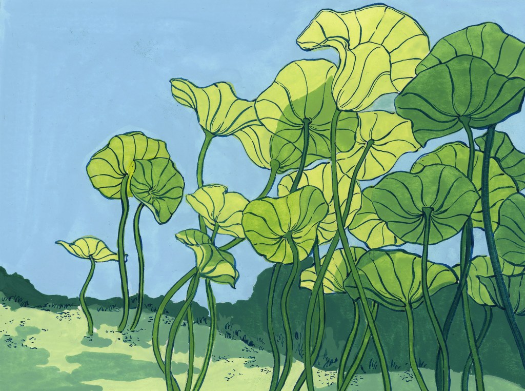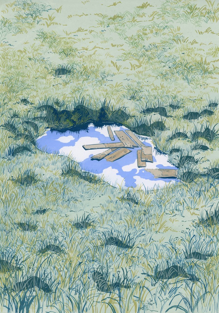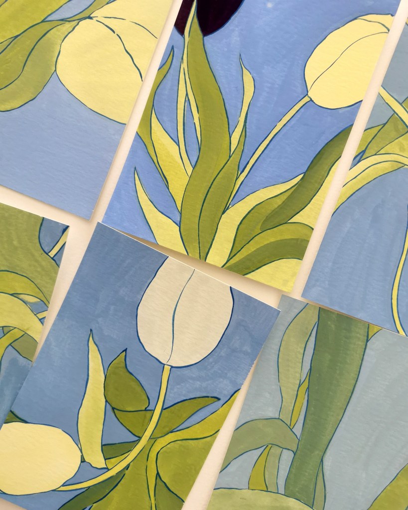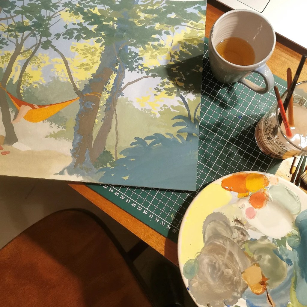 After studying archaeology and art history at the Ecole du Louvre, she turned to illustration. She likes to paint with gouache the memories of her walks, the shady areas near rivers and the weeds that resist in cities.