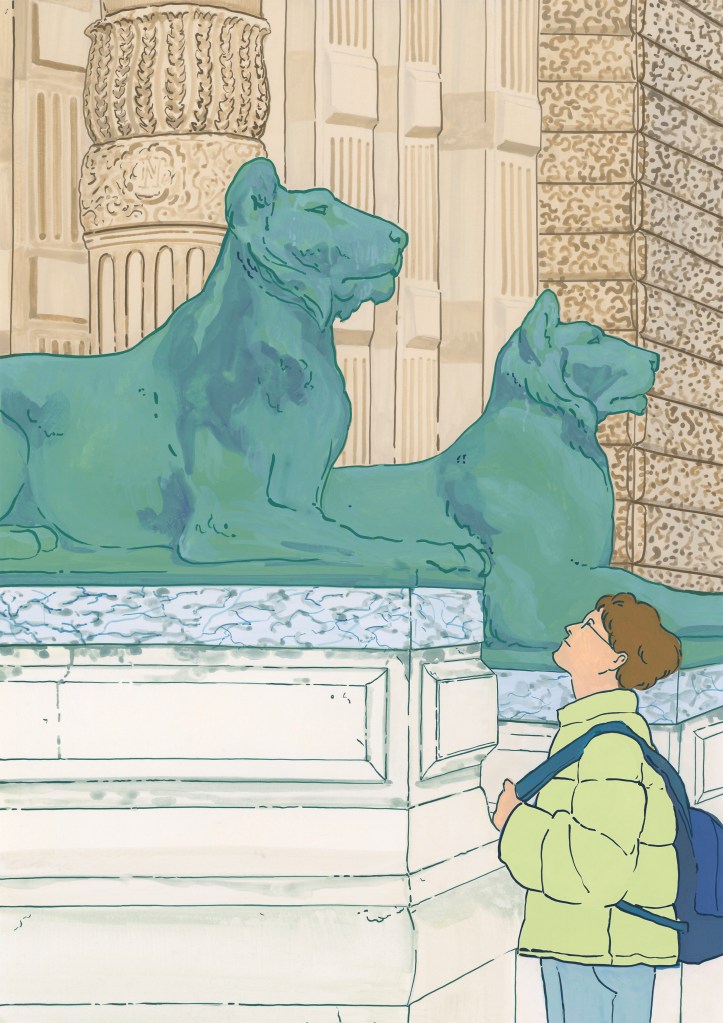 Après des études en archéologie et histoire de l’art à l’Ecole du Louvre, elle se consacre à l’illustration. Elle aime peindre à la gouache les souvenirs de ses balades, les zones ombragées près des rivières et les mauvaises herbes qui résistent dans les villes.